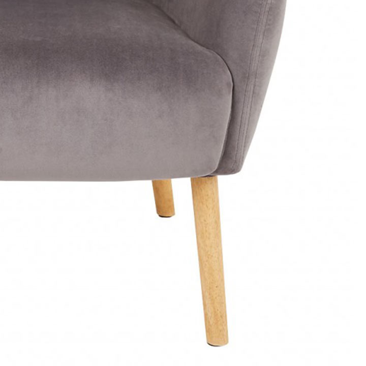 The chair has a slightly inclined back, rounded arms, a fixed seat cushion and slender ballerina legs in solid wood. Exclusive to Habitat, the chair is uphol stered in easy-care polyester velvet and comes in a choice of current and classic colours.